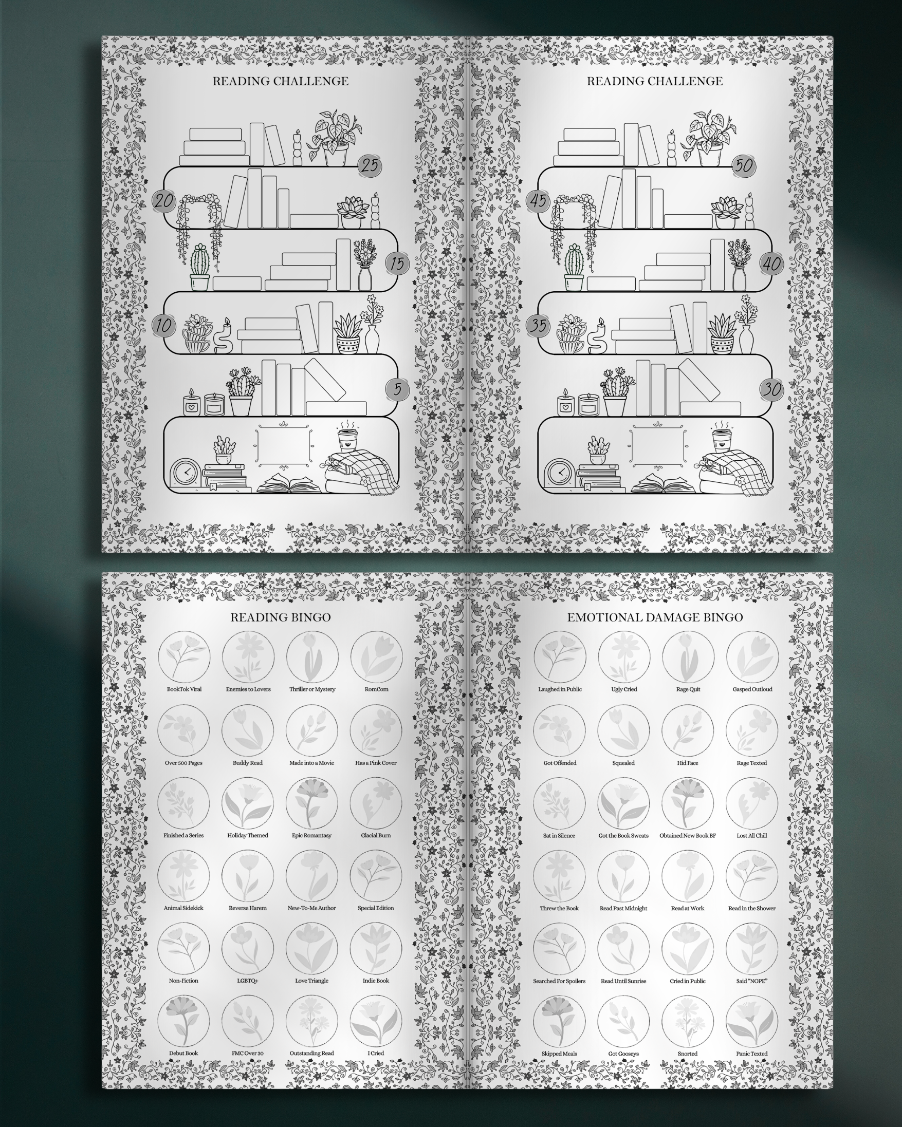 - Plenty of extra tracking and cataloguing pages, reading challenges, and games